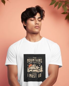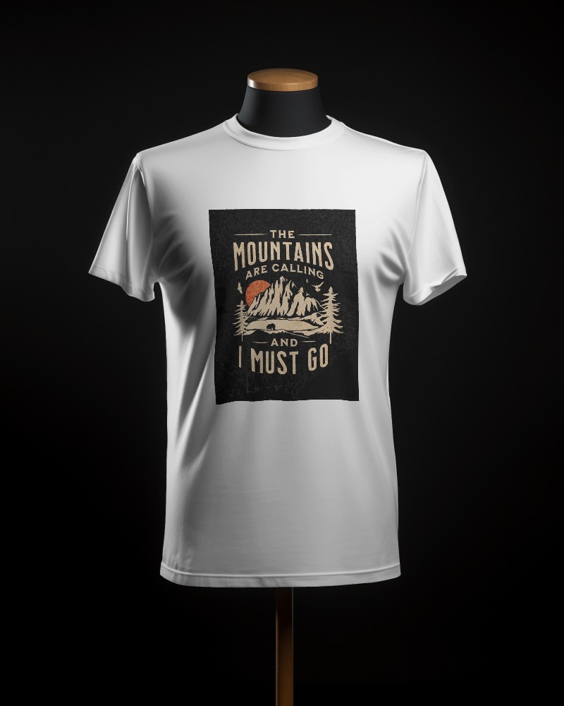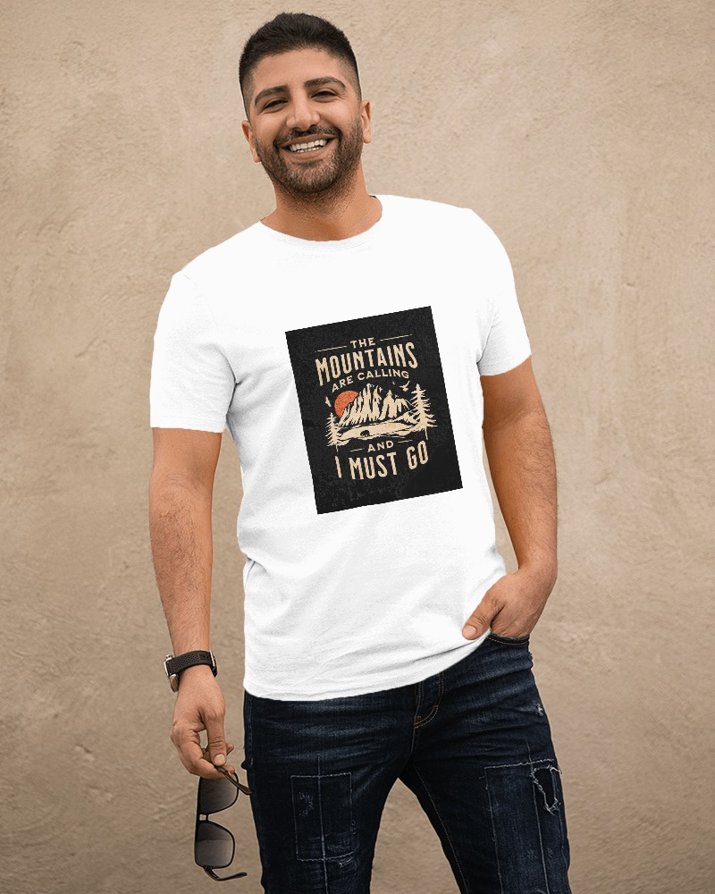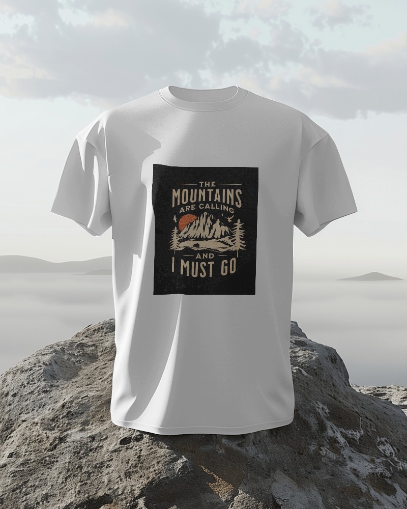 Stampa MOUNTAINS ARE CALLING AND I MUST GO, Maglietta giro collo e comodo per l'estate